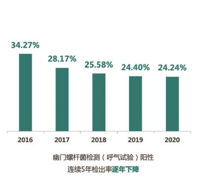 幽门螺杆菌检测阳性连续5年检出率下降