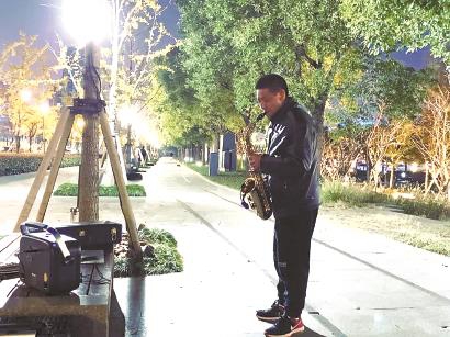大约两年前,有天傍晚老姜来滨江散步,看到有人吹萨克斯。