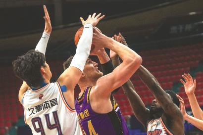 在逼迫对手频频出现失误后,大鲨鱼打出了最擅长的快攻,在第二节还剩4分多钟时终于填平了自己开场挖下的“大坑”,37:37追平比分。第二节结束前,随着郭昊文的上篮命中,大鲨鱼45:44,第一次在本场比赛中取得领先。