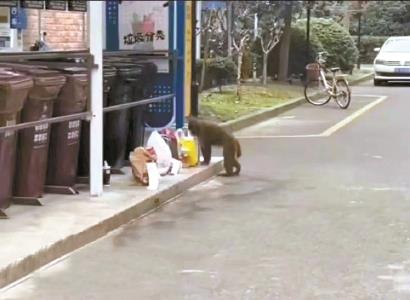 与此同时,松江也有一只猴子出没。这位“大师兄”大摇大摆在上海外国语大学的宿舍区“检查”了垃圾分类的情况,并且疑似顺手牵羊了同学们点的外卖,随后又在东华大学、上海视觉艺术学院溜达了一圈。
