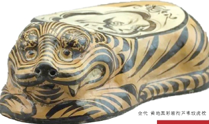 很多人看到上博馆藏的金代黄地黑彩雁衔芦苇纹陶瓷虎枕,就会不由自主地发出疑问:古代人真的会睡这么又冷又硬的枕头吗?不会睡出颈椎病吧?