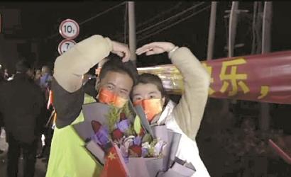 “今天终于可以一起回家了!”幸福村8组解封后,吴肖军终于等到了太太,14天未见第一句话就是,“老婆,辛苦了!”一束鲜花表达着对太太工作的理解,两人还摆了一个“爱心”的造型,这俨然就是最幸福的团聚。