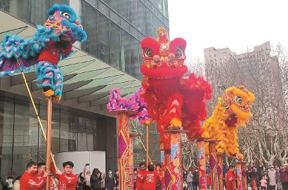 “龙腾新春添喜庆,狮威响鼓震八方”。2月9日上午,在淮海中路嘉华中心露天广场上,拥有90多年历史的香港夏国璋龙狮团为市民演绎原汁原味的南派“醒狮”表演,吸引路人驻足观看。表演中,“狮子”时而抓耳挠腮、时而跳跃戏珠,俏皮可爱惹人喜爱。当“狮子”在梅花桩上跳跃翻滚、旋转飞腾,完成难度极高的表演,现场观看的市民是惊叹连连。