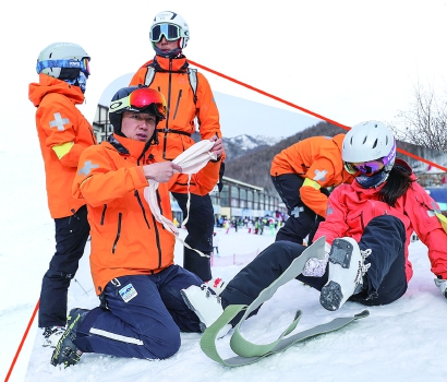 由于高山滑雪的危险性极高,重伤率不低,因此整个医疗保障是一个立体体系。滑雪医疗保障团队的医生要在现场第一时间处理伤情后,还必须将受伤运动员在15分钟内转移出赛道。