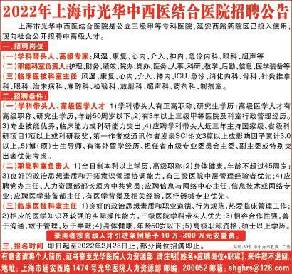 2022年上海市光华中西医结合医院招聘公告