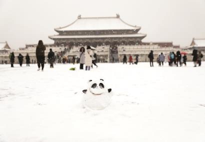 北京迎虎年第一场雪 “冰墩墩”故宫赏美景