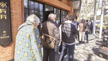 “哎哟,这队伍这么长啊!得有100人了!”“这得排几个小时?”在陕西北路上的美新点心店门口,两条队伍一左一右延伸向人行道的两方。记者数了一下,左侧等待收银的队伍大约20人,右侧等待领取生汤团的队伍则足足有近100人。