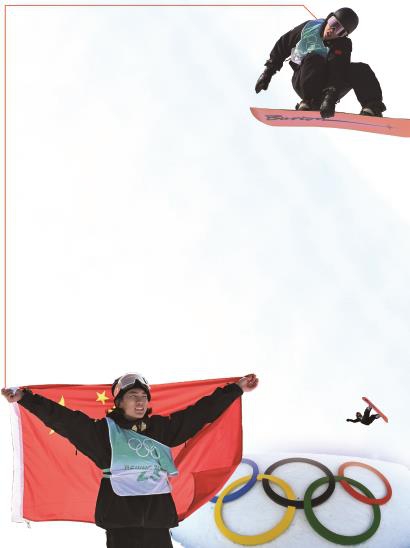 站在跳台顶端,少年和教练拥抱,看台上的欢呼清晰可闻。出发!这“王者”一跳,脚下的单板就像一朵祥云,托着少年自由地飞翔起来!