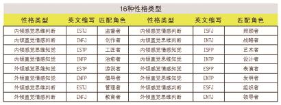 当通过总共93道题的MBTI测试后,我们能够算出自己“八极”的每一极得分,在以两极为一组的维度中,获得较高分数的一极,就是你的性格类型倾向。那么MBTI测试结果中的16种性格类型更匹配哪些职业角色呢?如果你的个性类型是ENTJ,那么你是天生的“都市丛林之王”,你能胜任领导者的角色;如果你的个性类型是INFP,那么你是个能够理解他人并帮助他人激发潜能的治愈者,很适合成为一名心理咨询师……