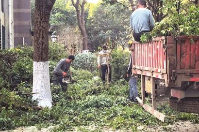 除了上文提到的好世凤凰城小区回缩式修剪树木案例外,去年晨报《老叶较真栏目》还报道过松江新桥镇四季御庭晶苑小区150多棵大树遭遇拦腰斩断式修剪,以及闵行虹桥镇龙柏三村等小区过度修剪树木的情况。