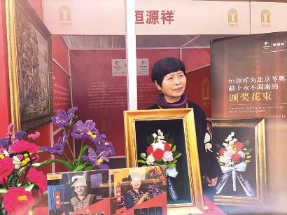 在恒源祥展位上,励美丽向大家介绍,“永不凋谢的奥运之花”是以上海市级非物质文化遗产——海派绒线编结技艺钩编而成的。北京冬奥会的颁奖花束包括玫瑰、月季、铃兰、绣球、月桂、桂花、橄榄7种绒线花材,花束手柄的蝴蝶结丝带为浅蓝色。