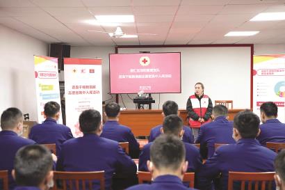 下午2点半,徐汇区红十字会的工作人员向吴兴消防救援站的队员们、支队机关干部代表详细介绍了造血干细胞捐献知识。