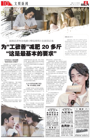一直以来,郑云龙以音乐剧演员的身份备受关注,《柳浪闻莺》则是他的第一部大银幕作品。接受晨报记者专访时,他表示,接演第一部男主大银幕作品,心情紧张又兴奋,同时收获也很大。