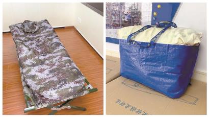 分隔成块的大屏幕上显示着周边道路的实时状况,彭浦新村街道城运中心市民服务热线工作组组长董敏和同事坐在电脑前,右手旁的电话铃一响就接了起来。从本周一上午一直到前天中午,街道开通的生活服务热线在两天半内接到了270余个来自周边居民的咨询或求助。左手边的办公室内,协调工作的话语此起彼伏,再往里一些的会议室办公椅后,架着董敏的临时床铺,早上起来叠好的被子被塞进了宜家的蓝色编织袋里,摆在了还没来得及处理的包装纸箱上。