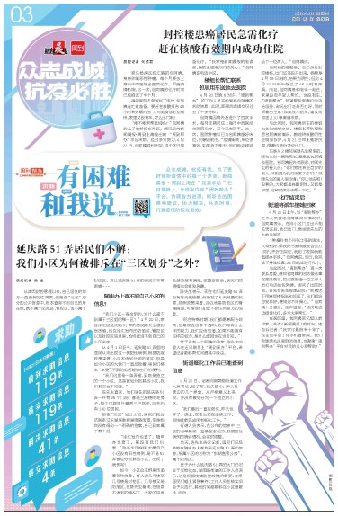 从浦西封控管理以来,自己居住的地方一直没有阳性病例,但是在“三区”划分的公开信息中,根本查询不到自己的所在地,既不属于防范区、管控区,也不属于封控区,这让延庆路51弄的居民们非常困惑……