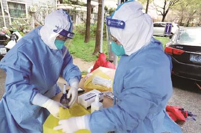 寻到门牌号,敲开10楼居民房门说明来意,住户说道:“我们有两个孩子,一大一小,要采两个人。”“不是说你们家就一个需要采样呀?”也不知道哪里衔接出了问题,因为就准备了一个采样管,但此刻争辩也无意义,我对另外两位年轻同事说:“这样吧,你们先在这里等我一下,我再去那一套试剂过来。”为了减少不必要的防控风险,心急的我穿着厚重的防护服一路小跑,再到住户家时眼前的面屏上已蒙上了一层薄薄雾气,住户看见气喘吁吁的我连声说道:“谢谢,谢谢,麻烦你们了。”