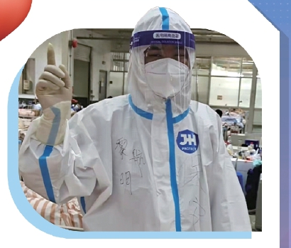 疫情不退,我们不散!我要继续战斗到关舱的那一天!来方舱这么久,最想念的还是在老家3岁的儿子。我本来不打算把自己在方舱做志愿者的事情告诉他,但是如今我也可以骄傲地和儿子说一声:爸爸在打怪兽,爸爸就要胜利了!