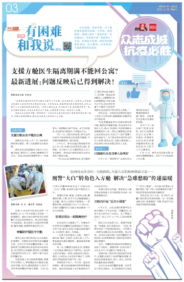 刑警“大白”转角色入方舱 解决“急难愁盼”传递温暖
