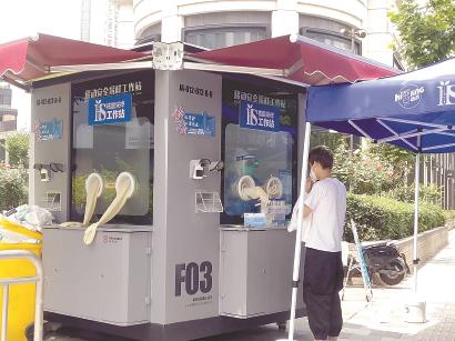 在吴江路13号线地铁口旁的常态化核酸采样点,中午时分这里处于休息时间。现场一位工作人员告诉记者,现在每个点位人手都很紧张,1日上午这个点只有一个采样人员,到下午两三点又增派了一个。中午工作人员要吃饭、更换防护服,核酸亭也要消毒,所以是停止服务的。