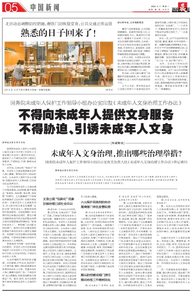 不得向未成年人提供文身服务 不得胁迫、引诱未成年人文身