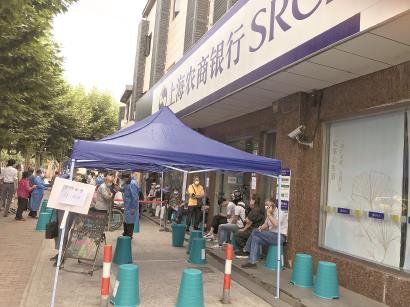 没办法,着急办事的赵晶再次返回工商银行浦东张江支行,把情况一五一十地讲给保安听,保安说,“着急的话,这边有一个常态化核酸检测点,我看着你去检测,然后放你进入银行”。