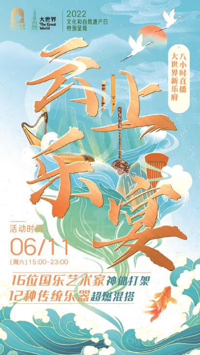 晨报讯 为迎接6月11日的文化和自然遗产日,上海大世界计划在当天开启一场“云上乐宴”8小时直播活动,让大家足不出户,就可以享受一场国乐盛宴。