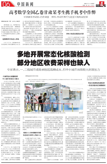 多地开展常态化核酸检测 部分地区收费采样也缺人