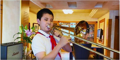■鹿鸣管乐团云端合奏 疫情的突如其来,给管乐合奏排练带来了很大的困难和压力。为保证学生的知识技能学习不间断,5月,学校联系上海各区的专业老师,召集团员开展线上教学。每周日上午进行线上课程,学生们拿着乐器坐在镜头前,教师们听着屏幕中传来的悦耳管乐,这个场景既熟悉又陌生。这次“六一”儿童节,学校也做了很多尝试,在反复打磨后由专业老师将每个团员的个人演奏内容混合剪成一则视频。师生们用一首管乐云端合奏《Amazing grace》庆祝“六一”国际儿童节!