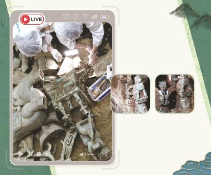 直播中推出数字交互空间,通过操作类似游戏界面,虚拟主持人带观众进入完全还原的考古大棚,近距离感受文物细节