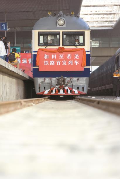 这条国家I级单线铁路,串联起沙漠里的点点绿洲,结束了塔里木盆地南缘且末、民丰等5个县和新疆生产建设兵团3个团场不通火车的历史。