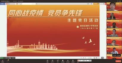 ■先锋分享 一名党员一面旗帜。施福建老师介绍老党员许冬生《忙,但很充实》;王后老师介绍党员干部陈维律《共克时艰,“疫”起努力》;孙国庆老师介绍青年党员戴骏翼《志愿前行,“翼”齐守“沪”》;高丹丹老师介绍副校长陆慧《“疫”起担当,守护家园》;李贺楠老师介绍青年教师陈丁谊、党员教师潘志敏《筑牢“疫”情防线,淬炼真金底色》的抗疫先进事迹。