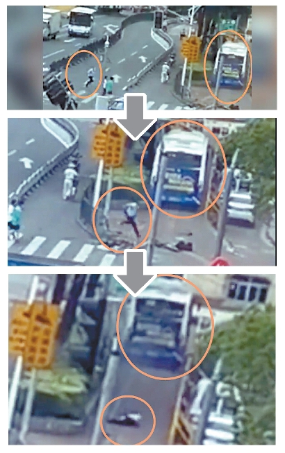 连福惠:我想着能不能赶上这辆公交车,拉住手刹,所以第一时间停好车,拼命地冲了过去。