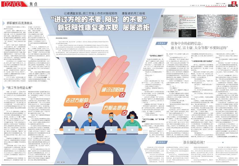 “进过方舱的不要,阳过的不要” 新冠阳性康复者求职屡屡遭拒