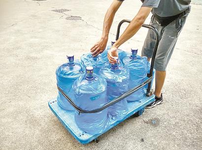 送水的小哥哥告诉我,他最近每天大约送110-120桶水,因为电动车每次运载的上限是7桶,桶太多车上也没法放,所以他每天至少要跑十几趟。遇到有些住在老公房或者老建筑的用户,只能自己拎上楼去。我问他辛苦吗,他咧着嘴笑了。