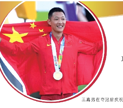 王嘉男披上一面五星红旗,在两万多名观众面前庆祝这历史性的胜利。对于这座号称田径之城的海沃德田径场,他并不陌生,8年前,他正是在这里举行的世界青年锦标赛上赢得了职业生涯第一个大赛冠军。