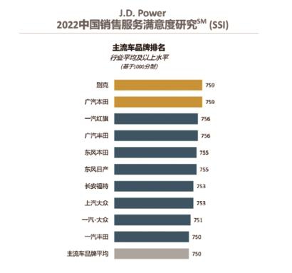从榜单来看,将近三分之二的品牌故障数高于平均值,而以可靠、省心著称的丰田,排名在十名以外,得分为172 PP100;日产和本田成绩也不太理想,分别为167 PP100、183 PP100,而J.D.Power发布的2022年中国汽车销售满意度研究(SSI)调查报告则覆盖了国内70个城市,涉及50个汽车品牌。从在线体验、入店前沟通、到店接待、店内看车、试乘试驾、交易过程、交车过程七大流程对各汽车品牌服务进行调研。在严苛的标准之下,别克连续三年蝉联2022中国销售服务满意度主流车品牌第一,充分展现出其行业领先的销售服务水平和不断优化的客户服务体验。