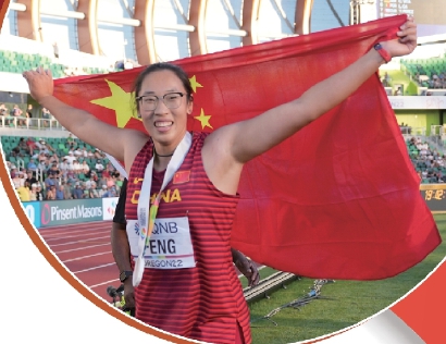 “非常开心,非常激动。”身披国旗在尤金的海沃德田径场庆祝完胜利后,冯彬爽朗地笑道。