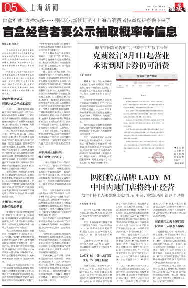 网红糕点品牌LADY M 中国内地门店将终止经营