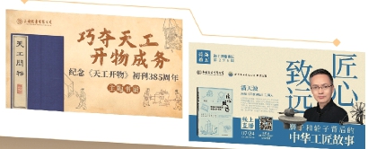 上海古籍书店的“巧夺天工,开物成务——纪念《天工开物》初刊385周年”主题书展,将展出《明本天工开物》《梦溪笔谈》《农政全书》《王祯农书》《考工记译注》《吴中水利全书》《营造法式》《中国古代瓷器制作术》《中国古代印刷术》《中国古代造纸术》《中国古代丝绸纺织术》《熬波图》《金匮要略》《景岳全书》《九章算术》《周髀算经》《饮膳正要》《茶经译注》《酒经译注》等一系列在中国古代科技、农业、工业、手工业、制造业、医学、算数、生活领域具有代表性,彰显古人匠人匠心、技巧智慧,并对世界文明和人类进步具有重要意义和价值的好书。