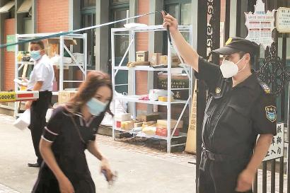 7月21日下午3时许,记者在茂名坊小区大门口看到,小区大门关闭一半,开放的一半用一根绳子拦住,保安尽职尽责地让每一位进入小区的人员扫描墙上张贴的场所码,确认绿码,解开绳子放行。