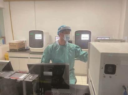 除夕清晨,褚维和父母吃了一顿简单的“年夜早饭”,便准时来到上海市疾控中心报到。在听完市疾控老师的检测工作介绍和安排后,褚维便随工作搭档进入实验室,投入繁忙的检测工作。