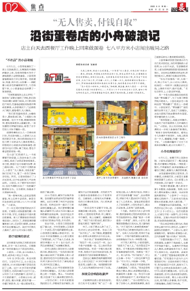 几张二维码、堆成小山的蛋卷,一个写有“无人售卖、付钱自取”的告示……最近,清峪路、同普路上的两家沿街小店,因店主常年不在,全靠顾客自觉的经营模式,渐渐引发注意。这家蛋卷店的年轻老板小郜,利用省下来的时间,又找了份工作,开店赚一点儿,工作赚一点儿,借助新媒体吆喝出去一点儿,即使接连遇到疫情和高温天双重打击,他的蛋卷店也开得平平稳稳。