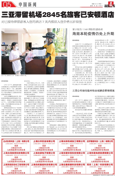 海南省高度重视滞留游客的服务保障工作,目前,成立了由省委常委、常务副省长沈丹阳同志任组长,由省委宣传部、省卫健委、省财政厅、省旅文厅等部门共同负责的游客服务工作专班,专班各项工作已于8月5日展开,将全力做好三亚、儋州、陵水等涉疫市县滞留旅客的安置安抚、服务保障应急等工作。