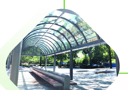 百年悬铃木所在区域被打造成一片绿草茵茵的梧桐广场,广场上还有亭廊供人们休息。整个空间因为围墙的拆除,一下子让原本狭窄的万航渡路整体开阔了许多,视觉通透。