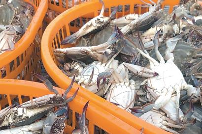 “今天的捕捞量与去年同期差不多,开捕后我的捕捞船队每天通过运鲜船送至码头的梭子蟹超过600吨。”