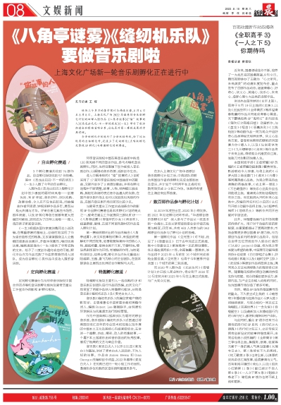《八角亭谜雾》《缝纫机乐队》要做音乐剧啦