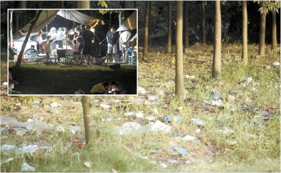网红露营地“团结新村”、黄楼村树林、“小松林湖”等,伴随着众多露营者的闯入,原本环境优美、静谧的地方,变成了垃圾场:随意被丢弃的食品包装袋、露营用品以及烧剩的木炭,遭车辆肆意碾压和篝火烧秃的草坪,以及树林里令人闻之掩鼻的屎尿恶臭都让人感到不可思议。当地村民纷纷表示,反感的并非露营行为,而是不文明露营行为给环境、居民生活带来的妨害。