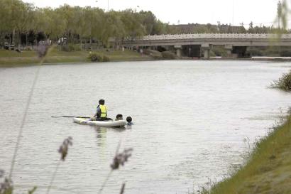 每逢周末,“团结新村”的河道上,都有不少家长带着孩子来划船、玩浆板甚至野泳。酷暑天,许多家长会选择在下午4点以后带孩子来这里。因为带着露营装备拖家带口来一趟并不容易,不少家庭即使遇到天降大雨、雷电交加的天气,也不会选择轻易离开,从而忽视了很多巨大的风险。