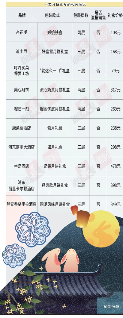 记者对杏花楼、迪士尼、半岛酒店等10款月饼礼盒进行测评后发现,它们都符合包装层数、包装材质等要求,售价都在500元以下。可以说,今年新上架月饼的包装明显集体“瘦身”啦。