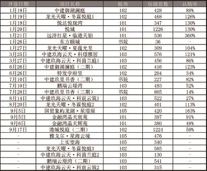 下半年,105片区销售情况较好,金融湾晶天宸苑开盘397套房源全部售罄,金融湾晶天辉苑380套开盘售罄,国贸象屿龙湖星璟原推出420套698组认购,认购率166.19%;102片区,三批次龙光天曜401套房,470组认购,认购率117.21%,四批次港城悦庭1224套房,预计认购900+组,认购率达74%。